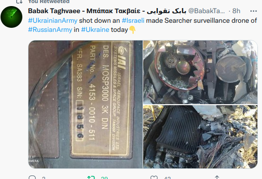 #UkrainianArmy shot down an #Israeli made Searcher surveillance drone (or Russian copy of it)